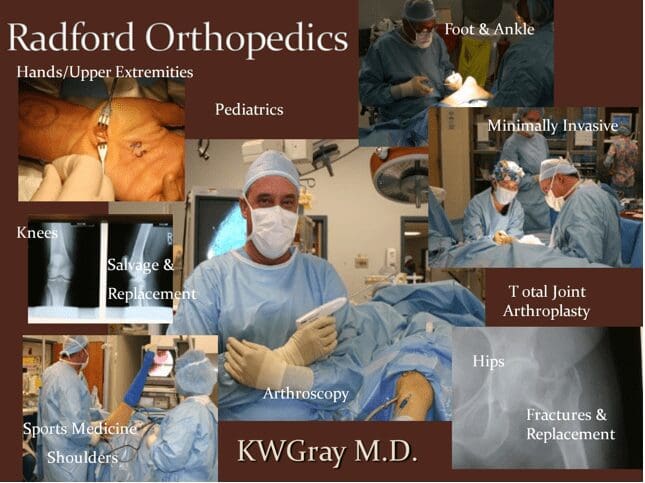 Incorporated in the 1970s, Dr Gray from 1984, we have been serving Southwest Virginia and the New River Valley area with the best orthopedic services, from minimal intervention procedures to minor surgical procedures to extensive procedures. Read more about Radford Orthopedic Center and our doctors here.